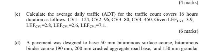 Solved 4 Marks C Calculate The Average Daily Traffic Chegg Com